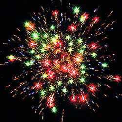 Разноцветные кометы раскрываются сферами из: золотых форсов с красными огнями на концах; золотых форсов с зелеными огнями на концах.