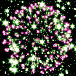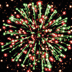 Разноцветные кометы разрываются сферами из золотых мерцающих, трещащих огней и крупных цветных огней.