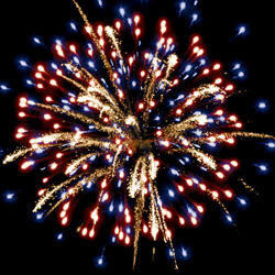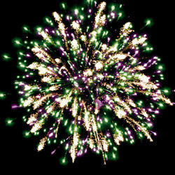 Разноцветные кометы, золотые с цветными искрами трассы разрываются сферами из золотых трещащих форсов и мерцающих огней.