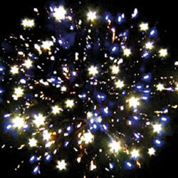 Цветные звезды и облако треска (трещащий дождь). Разноцветные мерцающие сферы с пышными хвостами.