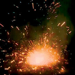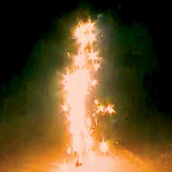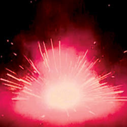 Фонтан серебряных и трещащих искр. Вертушка образует круг цветного огня.
