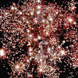 Золотая мерцающая сфера. Облако треска. Разноцветные звезды с пышными хвостами.