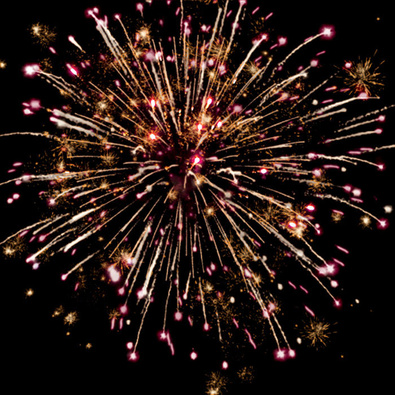 Разноцветные кометы разрываются сферами из: золотых мерцающих и трещащих огней.