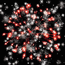 Разноцветные кометы разрываются сферами из золотых искристых форсов, цветных мерцающих огней и множеством трещащих сфер.