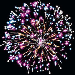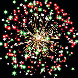 Разноцветные кометы, свистящие элементы разрываются сферами из коротких трещащих форсов и цветных мерцающих огней.
