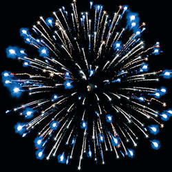 Разноцветные кометы разрываются сферами из цветных мерцающих огней, золотых, коротких трещащих форсов и трещащих огней.
