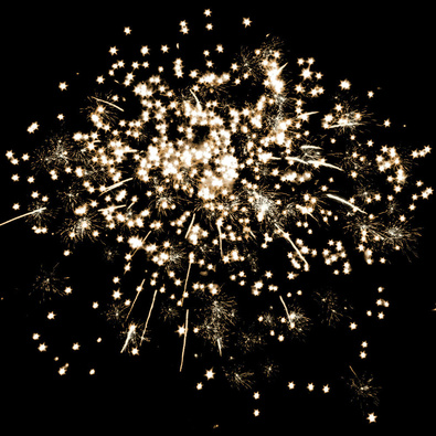 Разноцветные кометы, мерцающие трассы разрываются сферами из цветных огней с серебряными форсами в центре и трещащими искрами.