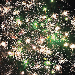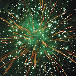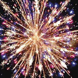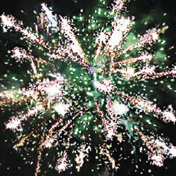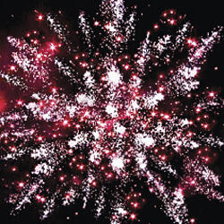 Серебряные звезды с пышными шуршащими хвостами и мерцание. Залпы: множество золотых и серебряных ниспадающих нитей, цветные звезды и облако треска.