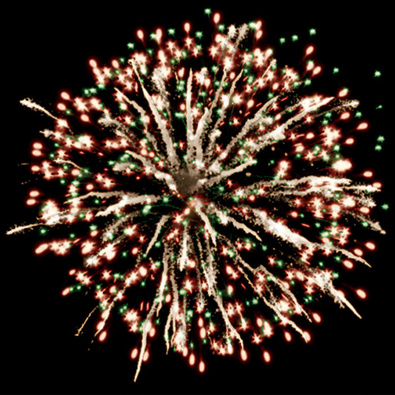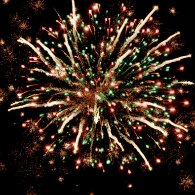 Разноцветные кометы разрываются сферами из золотых форсов, и цветных мерцающих огней.