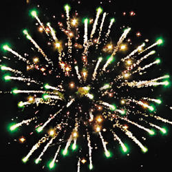 Цветные звезды с пышными хвостами. Множество серебряных ниспадающих нитей и мерцание. Облако треска и сфера золотых хвостов.