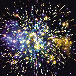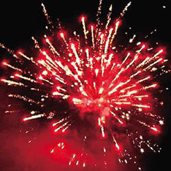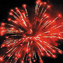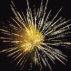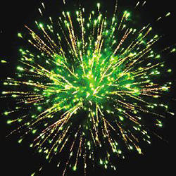 Сфера золотых хвостов с переходом в красные звезды (цветная хризантема). Сфера золотых хвостов с переходом в зеленые звезды (цветная хризантема) и белое мерцание. Множество серебряных ниспадающих нитей (парча). Красно-сине-фиолетовая сфера (пион) и треск. Сине-желто-белая мерцающая сфера (пион). Красные звезды с пышными хвостами (кокос) и белое мерцание. Зелено-фиолетово-белая мерцающая сфера (пион). Фиолетово-белая сфера (пион). Множество серебряных ниспадающих нитей (парча) с красными звездами на концах и белое мерцание. Красочная концовка. ЗАЛП: Красные звезды с пышными хвостами (кокос), фиолетовые звезды, трещащие золотые хвосты (трещащая ива) и белое мерцание.
