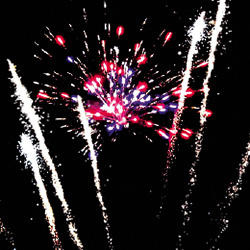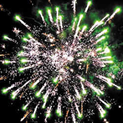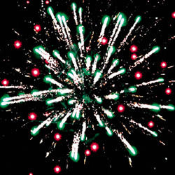 Веер - мерцающие белые букеты (бураки). Выстреливает подряд: Множество серебряных ниспадающих нитей (парча) и белое мерцание. Красно-зеленые звезды с пышными хвостами (кокос) и облако треска (трещащий дождь). Сфера золотых хвостов с переходом в красные звезды (цветная хризантема) и треск. Сфера золотых хвостов с переходом в зеленые звезды (цветная хризантема) и треск. Множество серебряных ниспадающих нитей (парча) и красное мерцание. Множество золотых ниспадающих нитей (парча) и зеленые звезды. Веер - Красные и зеленые кометы с пышными хвостами. Выстреливает подряд: Свист. Красные звезды с пышными хвостами (кокос) и облако треска (трещащий дождь). Зеленые звезды с пышными хвостами (кокос) и облако треска (трещащий дождь). Выстреливает подряд: Зеленые звезды с пышными хвостами (кокос) и красное мерцание. Зеленые звезды с пышными хвостами (кокос) и золотое мерцание. Веер W-формы: по сторонам - трещащие кометы, посередине - зеленые звезды с пышными хвостами (кокос), синие и красные звезды. Веер: Трещащие кометы с пышными хвостами и красно-сине-белая мерцающая сфера (пион). Красно-сине-белая мерцающая сфера (пион). Красно-зеленая сфера (пион) и облако треска (трещащий дождь). Серебряные звезды с пышными хвостами (кокос), красное и зеленое мерцание. Красочная концовка: ЗАЛП - Красно-зеленые звезды с пышными хвостами (кокос) и облако треска (трещащая хризантема).