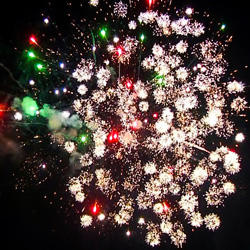 Букет из разноцветных и трещащих звезд. Свистящие змейки в синие звезды. Парча с трещащими жемчужинами. Свистящие змейки и громкие хлопки. Бело-красные сферы. Хризантемы и трещащие жемчужины. Красные хризантемы. Золотые трещащие одуванчики. Разноцветные мерцающие пионы. Хризантемы и растрескивающиеся цветочки. Трещащая сфера с разноцветными звездами. Зеленые жемчужины в серебряном блеске. Золотая парча. Серебряная пальма и красные звезды. Парча с яркими звездами. Мерцающие пионы. Золотая парча с треском. Шлейфы. Финал – занавес из золотой парчи.