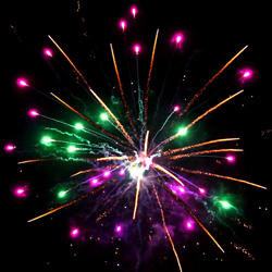 Цветные хризантемы. Золотые ивы. Ивы и зеленые и пурпурные звезды. Зеленые хризантемы. Серебряные мерцающие хризантемы. Цветные пионы. Пурпурные цветы с треском. Шуршащие пальмы. Трещащие ветви и красные звезды.