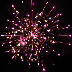 Парчовая пальма с белым мерцанием. Золотая пальма с красными и зелеными звездами в сопровождении ослепительного мерцания. Красные кометы с пышными шлейфами сопровождаются оглушительным треском и мерцанием. Парчовая пальма сопровождается множеством трещащих сфер. Красные и зеленые кометы раскрываются золотыми волнами. Красная пальма с синими жемчужинами и трещащими искрами. Финал: золотые пальмы раскрываются множеством лиловых жемчужин и переходят в оглушительный треск и ослепительное мерцание.