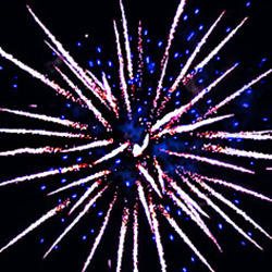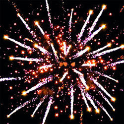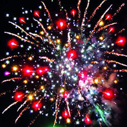 Зелено-желтая сфера (пион) и треск. Серебряные звезды с пышными хвостами (кокос) и зеленое мерцание. Мерцающие золотые хвосты (мерцающая ива) и фиолетовые звезды. Желтые звезды с пышными хвостами (кокос) и золотое мерцание. Серебряные звезды с пышными хвостами (кокос) и фиолетовые звезды. Желто-красная сфера (пион) и белое мерцание. Серебряные звезды с пышными хвостами (кокос) и синие звезды. Золотые звезды с пышными хвостами (кокос) и зеленое мерцание. Красные падающие букеты звезд (падающие листья) и трещащие букеты. Красочная концовка. ЗАЛП: красно-зелено-синие шуршащие разлетающиеся кометы (паучки).