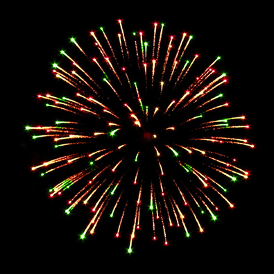 Разноцветные кометы разрываются сферами из: Серебряных форсов с серебряными огнями на концах и трещащих огней. Серебряных форсов с красными и зелеными огнями на концах. Красных и белых мерцающих огней. Трещащих огней.