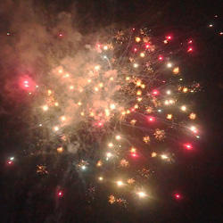 Парча и синие звезды. Треск и яркие звезды. Цветные пионы. Треск и алые звезды. Мелкий треск. Золотые ивы. Парча и красные звезды. Треск и зелено-красные звезды. Ивы с треском. Золотые пальмы и красные звезды. Треск и пурпурные звезды.