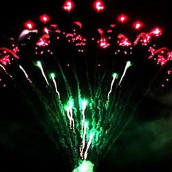 Красные кометы переходят в разноцветные пионы. Зеленые кометы переходят в разноцветный жемчуг. Красные кометы переходят в мерцающие золотые волны. Белые мерцающие букеты раскрываются множеством хризантем. Красные кометы раскрываются мерцающим цветным жемчугом. Зеленые кометы переходят в цветной жемчуг. Мерцающие парчовые короны. Мерцающие букеты раскрываются сиреневыми пионами. Красные кометы переходят в красные кокосы с ярким мерцанием. Зеленые кометы переходят в сиреневые кокосы с ярким мерцанием. Синие кометы переходят в синие опадающие георгины. Красные опадающие листья. Золотые мерцающие букеты взмывают в небо серебристыми рыбками со свистом. Зеленые опадающие листья. Акустический эффект. Красные кометы переходят в красные трещащие кокосы. Кометы рассыпаются красным жемчугом. Зеленые мерцающие кометы раскрываются зелеными кокосами. Кометы переходят в синие волны. Золотые кометы раскрываются золотыми трещащими кокосами. Синие кометы раскрываются множеством трещащих хризантем. Серебряные кометы раскрываются серебряными кокосами с красными вспышками.