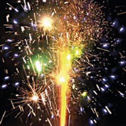 Поток золотых искр, цветные огни и трещащие вспышки.
