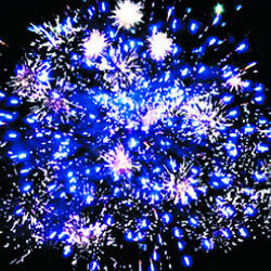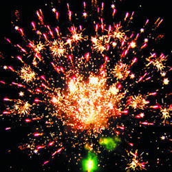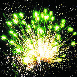 Красная сфера (пион) и облако трещащих разрывов (трещащий дождь). Зеленая сфера (пион) и облако трещащих разрывов (трещащий дождь). Синяя сфера (пион) и облако трещащих разрывов (трещащий дождь). Красно-желтая сфера (пион) и облако трещащих разрывов (трещащий дождь).