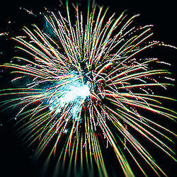 Букеты из свистящих элементов разрываются букетами из разбегающихся серебряных, трещащих огоньков (веер V); свистящие элементы разрываются зелеными огнями и сферами из серебряных огоньков с треском (веер S); свистящие элементы разрываются зелеными огнями и сферами из серебряных огоньков с треском (веер W); Разноцветные кометы, золотые с золотыми мерцающими искрами, золотые с красными мерцающими искрами, золотые с зелеными мерцающими искрами трассы; золотые с серебряными мерцающими искрами трассы разрываются сферами из: золотых форсов с букетами из серебряных мерцающих огней в центре; золотых форсов и синих огней; золотых форсов с красными мерцающими искрами; золотых форсов с зелеными мерцающими искрами; золотых форсов с золотыми мерцающими искрами; золотых форсов с серебряными мерцающими искрами; букетами из красных огней и серебряных трещащих огоньков, золотых искристых форсов с красными и зелеными огнями на концах (веер).