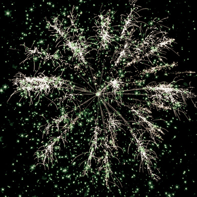 Разноцветные кометы разрываются сферами из коротких искристых трещащих форсов и цветных мерцающих огней.