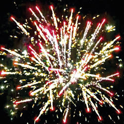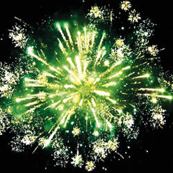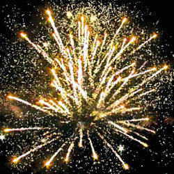 Множество серебряных ниспадающих нитей. Цветные мерцающие сферы. Звезды с пышными хвостами. Облако треска.