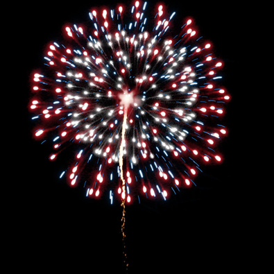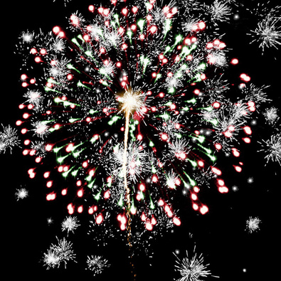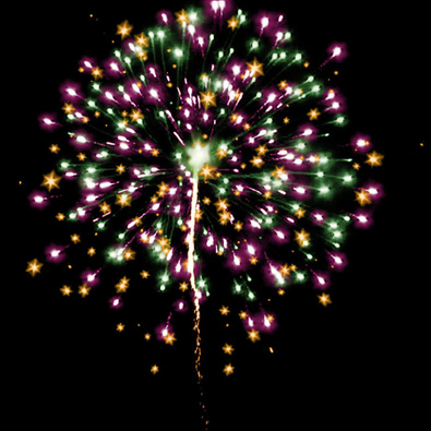 Разноцветные кометы разрываются сферами из цветных мерцающих и трещащих огней.