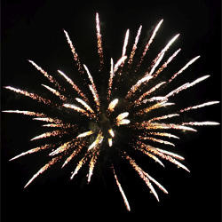 Серебряные шлейфы раскрываются золотыми хризантемами с белыми мерцающими искрами. Серебряные шлейфы раскрываются золотыми пальмами с белыми мерцающими искрами. Серебряные шлейфы раскрываются золотыми трассами с цветными мерцающими искрами. Серебряные шлейфы раскрываются золотыми, трещащими кокосами. Серебряные шлейфы раскрываются золотыми хризантемами с трещащими искрами. Серебряные шлейфы раскрываются серебряными пальмами с красными и синими жемчужинами с треском. В финале парчовые ивы с пурпурными жемчужинами.