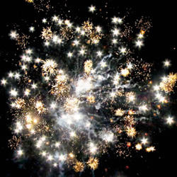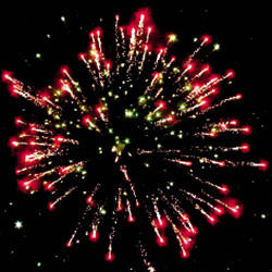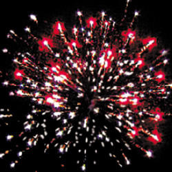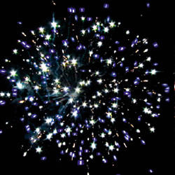 Красно-белая мерцающая сфера (пион). Сине-белая мерцающая сфера (пион). Красные звезды с пышными хвостами (кокос) и зеленое мерцание. Трещащая сфера.