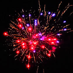 7. Множество лиловых и желтых огоньков, переходящих в трещащие хризантемы.