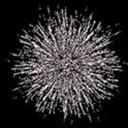Разноцветные кометы разрываются сферами из крупных золотых и цветных мерцающих огней со множеством трещащих сфер, серебряных форсов.