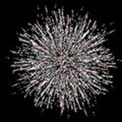 Разноцветные кометы разрываются сферами из крупных мерцающих огней с множеством трещащих сфер и серебряных форсов. Красочные залпы в финале.
