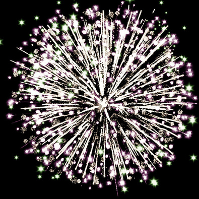 Разноцветные кометы разрываются сферами из цветных мерцающих и трещащих огней, серебряных форсов с трещащими искрами.