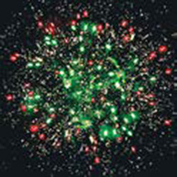 Разноцветные кометы разрываются сферами из: красных и белых мерцающих огней,синих огней с серебряными рыбками,трещащих огней,фиолетовых и белых мерцающих огней,синих и серебряных мерцающих огней,красных, зеленых и трещащих огней,красных огней с форсами и белых мерцающих огней,зеленых огней с форсами и трещащих огней,пурпурных и зеленых огней,множества трещащих сфер.Красочная концовка.