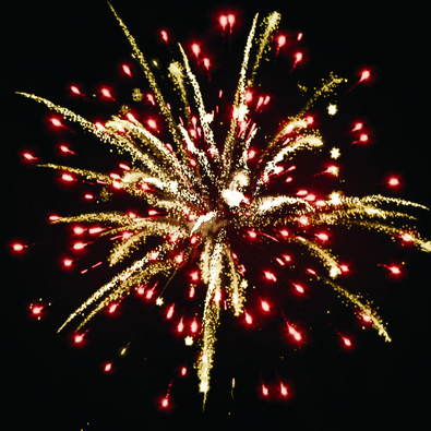 Разноцветные кометы разрываются сферами из золотых форсов, мерцающих огней и множества трещащих сфер.
