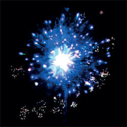 Четкость работы выверенное сочетание множества новейших эффектов делает этот салют уникальным и интересным. Опадающая парча с ультрамариновыми звездами и белым мерцанием переходит в великолепные трещащие пальмы. Алые волны с синими огромными пионами раскрываются удивительными трещащими хризантемами.