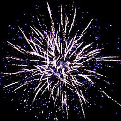 Опадающая парча с голубыми звездами и белым мерцанием переходит в великолепные трещащие пальмы. Алые волны с синими огромными пионами раскрываются удивительными трещащими хризантемами. Голубые переливающиеся кометы переходят в синие георгины, которые сменяются огромные серебряными хризантемами. Красные переливающиеся кометы превращаются в красивую золотую паутинку в обрамлении золотых вспышек. Зеленые кометы переходят с громким шумовым эффектом в золотые пальмы. Финал из голубых мерцающих комет, переходящих в пушистые золотые пальмы.
