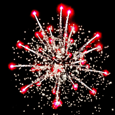 Разноцветные кометы разрываются сферами из: Искристых трещащих форсов и красных огней. Искристых трещащих форсов и зеленых огней. Искристых трещащих форсов и фиолетовых огней. Серебряных форсов, красных и серебряных трещащих огней.