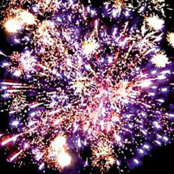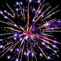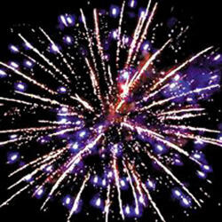 Множество золотых ниспадающих нитей и цветные звезды. Разноцветные сферы и облако золотого треска. Множество серебряных ниспадающих нитей и серебряные звезды с пышными хвостами. Облако треска.
