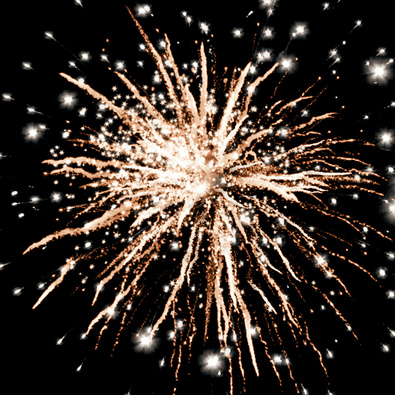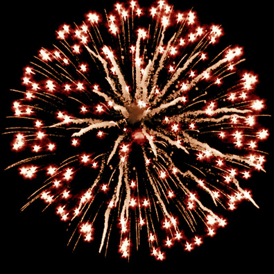 Разноцветные кометы разрываются сферами из золотых форсов и цветных мерцающих и трещащих огней.