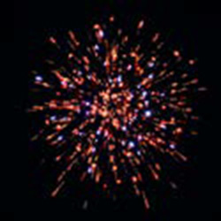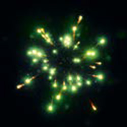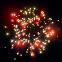 Цветные кометы разрываются сферами из разноцветных серебряных и золотых мерцающих и трещащих огней.