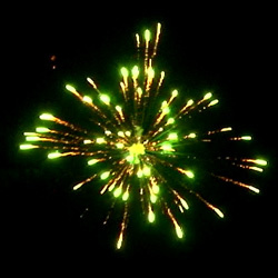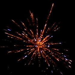 Цветные огни и золотые форсовые мерцающие трассы, множество золотых нитей, трещащие искры.