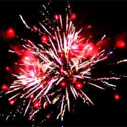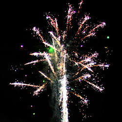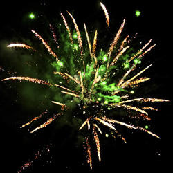 Красные и зеленые звезды с пушистыми шлейфами сопровождаются серебряным мерцанием. Золотые волны с красными жемчужинами. Золотые волны с зелеными жемчужинами. Золотые ивы с серебряными нитями и мерцанием. Золотые волны с пурпурным и изумрудным мерцанием. Красные и синие звезды с серебряными шлейфами. Золотые волны с фиолетовыми жемчужинами. Золотые трещащие шлейфы с изумрудным и серебряным мерцанием. Золотые волны с белым мерцанием. Свистящие рыбки. Разноцветные кокосы переходят в огромное трещащее облако.
