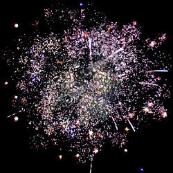 Красные кометы раскрываются красными и синими жемчужинами с белыми мерцающими искрами. Зеленые кометы раскрываются парчовыми коронами с золотыми мерцающими искрами. Красные кометы раскрываются пальмами с красными огоньками и тысячей трещащих искр. Свистящие змейки. Зеленые кометы раскрываются парчовыми коронами с зелеными жемчужинами. Огромные золотые ивы. Золотые хризантемы с красными жемчужинами. Золотые хризантемы с зелеными жемчужинами. Огромные пальмы с тысячей трещащих хризантем. Синие кометы раскрываются серебряными и зелеными жемчужинами с мерцающими искрами. Красные кометы раскрываются голубыми георгинами с золотыми мерцающими искрами. Голубые кометы раскрываются красными георгинами с золотыми мерцающими искрами. Голубые кометы раскрываются серебряными хризантемами с треском. Золотые ивы с красными жемчужинами. Золотые ивы с зелеными жемчужинами. В финале: Золотые кометы раскрываются множеством трещащих хризантем.