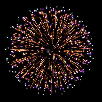 Разноцветные кометы разрываются сферами из: Золотых форсов, зеленых, синих и фиолетовых огней. Золотых с трещащими искрами форсов, голубых и золотых мерцающих огней. Золотых форсов, голубых, оранжевых и красных мерцающих огней. Золотых форсов, фиолетовых, оранжевых и серебряных мерцающих огней.