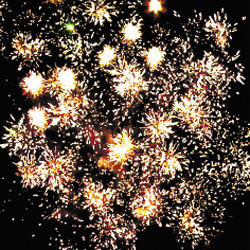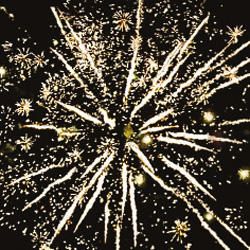Цветные звезды с пышными хвостами, золотое мерцание и облако треска.