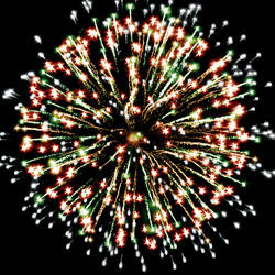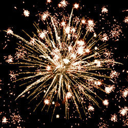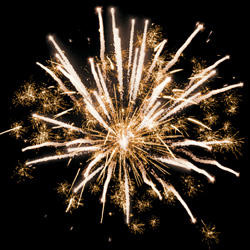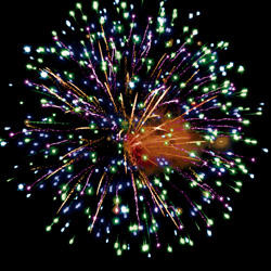 Разноцветные кометы. Сферы из цветных мерцающих огней. Золотые и серебряные форсы. Золотые трещащие разлетающиеся искры.
