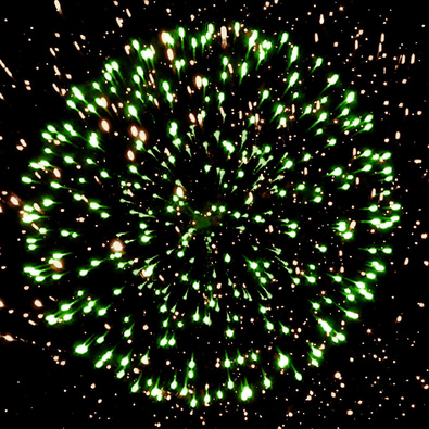 Разноцветные кометы, золотые трассы разрываются сферами из: Серебряных форсов с красными огнями на концах и белых мерцающих огней. Множества трещащих сфер и синих огней. Множества трещащих сфер и красных огней. Зеленых и золотых мерцающих огней. Золотых форсов и золотых мерцающих огней. Серебряных форсов и трещащих огней. Фиолетовых, голубых и белых мерцающих огней. Красных, голубых, желтых и трещащих огней (залп).